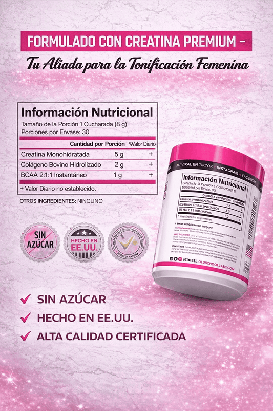 Old School Creatina™ – Fórmula Especial para Glúteos, Busto y Tonificación Femenina