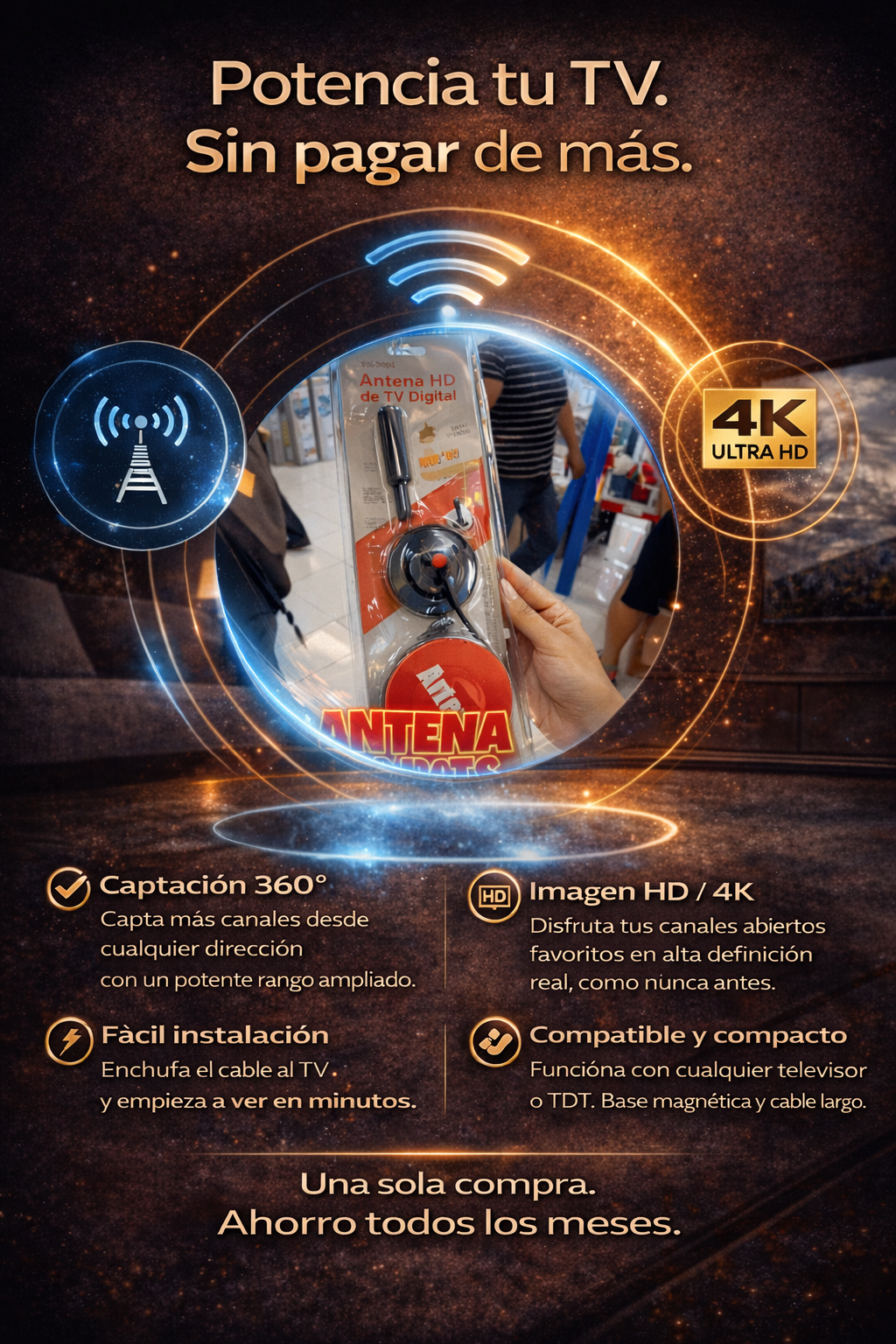 Con la Antena TDT PRO 30 dBi™, conviertes cualquier televisor en una experiencia de imagen clara, estable y sin interferencias desde el primer día.